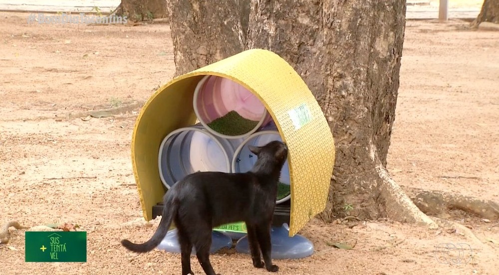Os gatinhos que vivem no campus da Universidade Federal do Tocantins (UFT) em Palmas ganharam casinhas construídas com materiais recicláveis. A moradia é simples mas foi feita com carinho por estudantes do curso de engenharia ambiental.